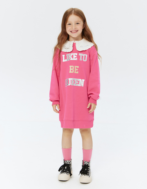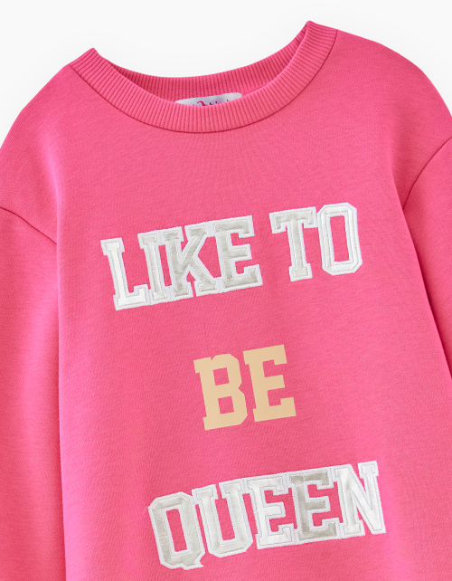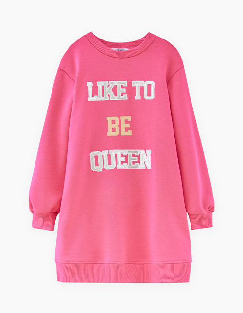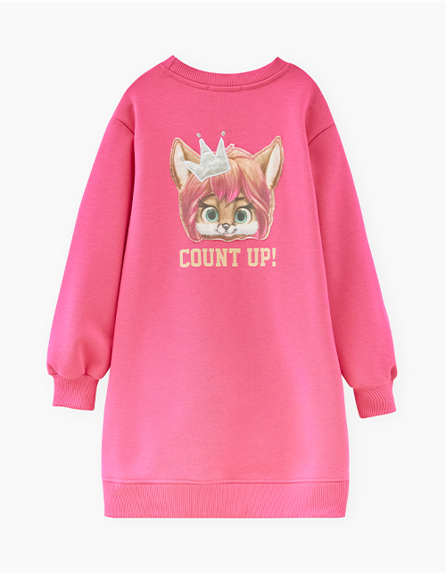 Стильное платье цвета фуксия. Модель прямого силуэта декорирована авторским принтом и вышивкой.