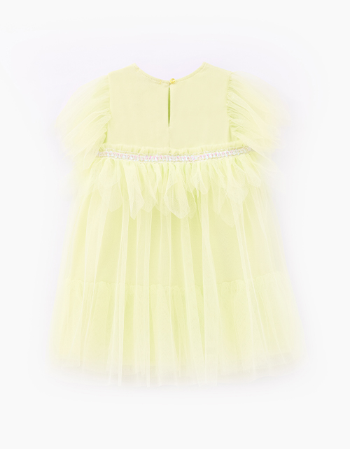 Дизайнерское платье в сочном оттенке для девочки. Комфортный А?образный силуэт с сетчатым подъюбником создаёт воздушность. Объёмные рукава?лепестки и декоративная лента превращают модель в платье?цветок. Пуговичка на спинке - нежный акцент.