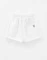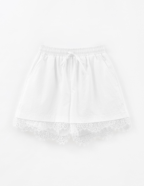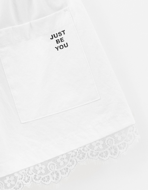 Белые шорты-боксёры из поплина с жатым эффектом выполнены в прямом, широком силуэте. Кружево по низу создаёт романтичный акцент. Мягкий пояс с эластичной лентой и функциональным шнурком обеспечивает комфорт, а накладные карманы добавляют практичности.