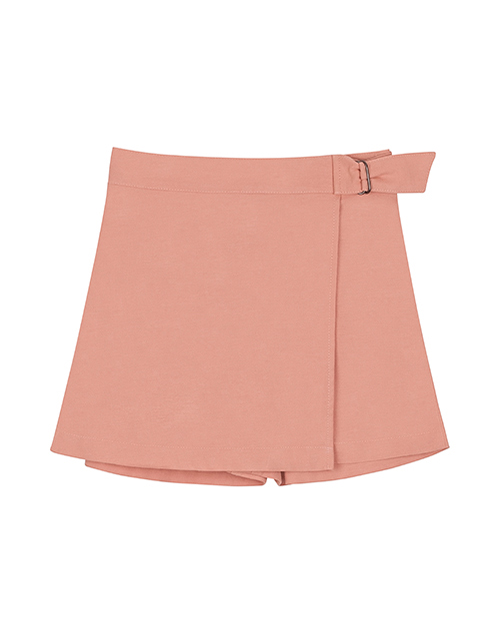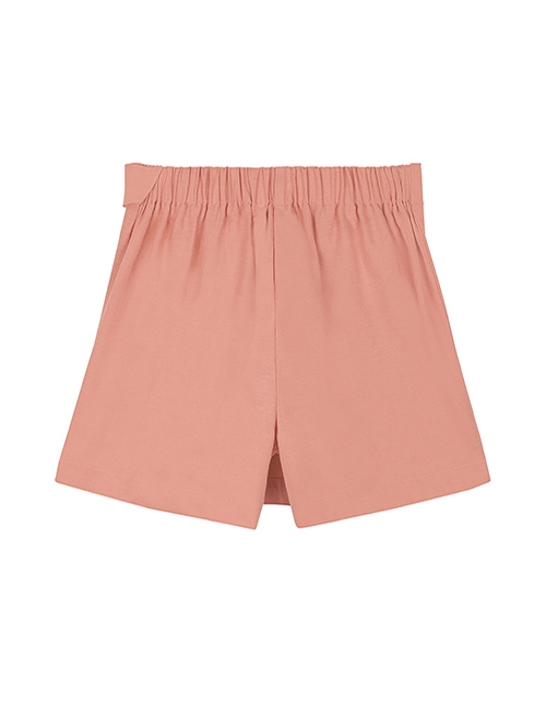 Шорты для девочки цвета темный коралл. Имитирующий юбку запах на лицевой стороне.