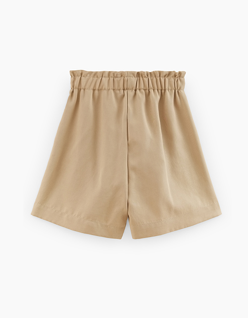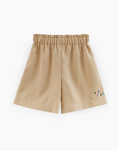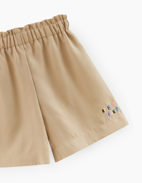 Светло-бежевые лёгкие шорты для девочки. Широкая модель с высокой посадкой. Максимально комфортное изделие без застёжки, на мягком поясе. Шорты из красивого и мягкого лиоцелла декорированы вышивкой.