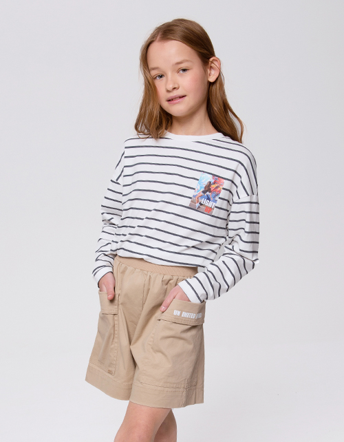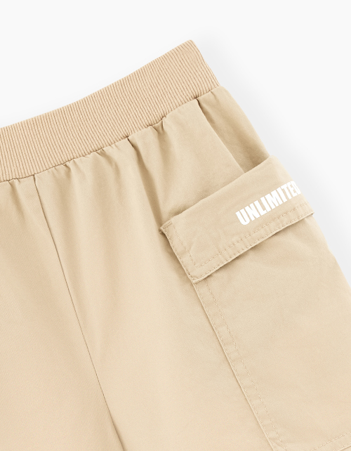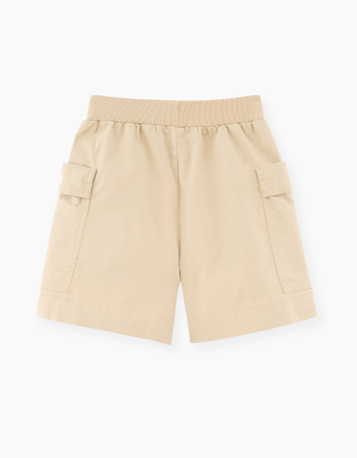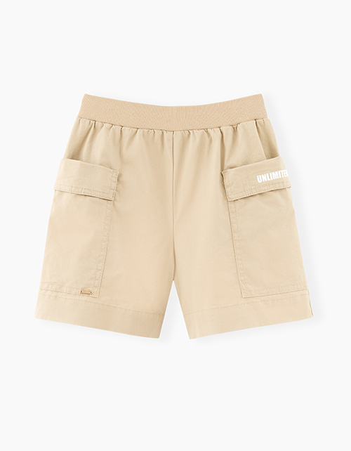 Светло-бежевые летние шорты для девочки. Комфортная повседневная модель на эластичном поясе и с накладными карманами.