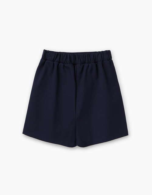 Темно-синие школьные шорты с эластичным поясом из джерси. Удобные, мягкие. Плотная ткань хорошо держит форму в течение дня. Из лимитированной школьной капсулы.