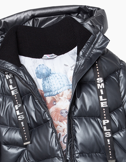 Черная зимняя куртка из плащевой ткани с блеском. Модель из ветрозащитного и водоотталкивающего материала. Удобные карманы, притачной капюшон. Утеплена синтепухом и подходит для морозной зимы до -20 градусов.