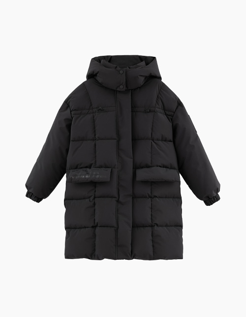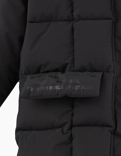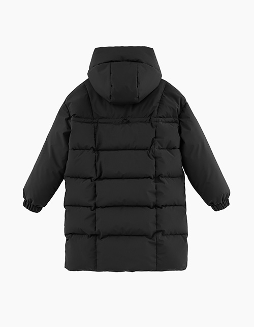 Пальто на гипоаллергенном синтепухе. Чёрная плащёвая матовая ткань. Прямая модель с утяжкой. Ветрозащитная планка на кнопках. Воротник-стойка и глубокий капюшон. Эластичные манжеты. Дышащая нейлоновая подкладка. Авторский декор. Рекомендовано до -20.