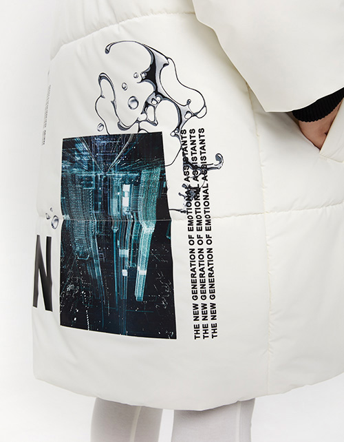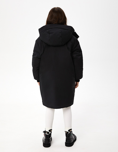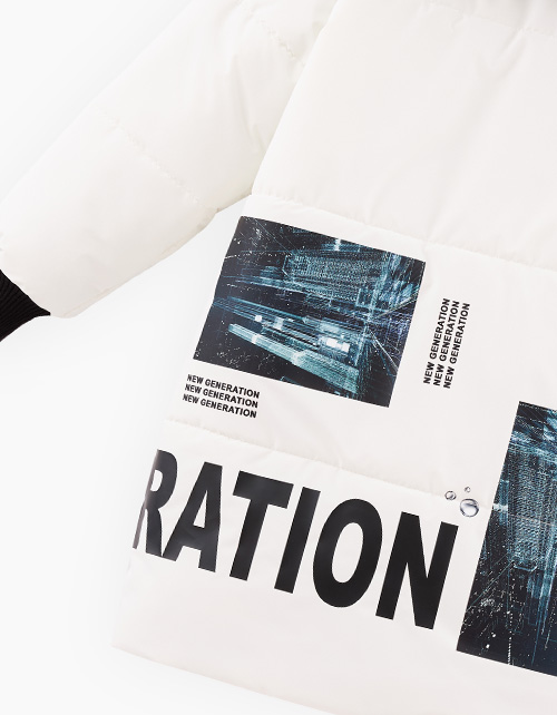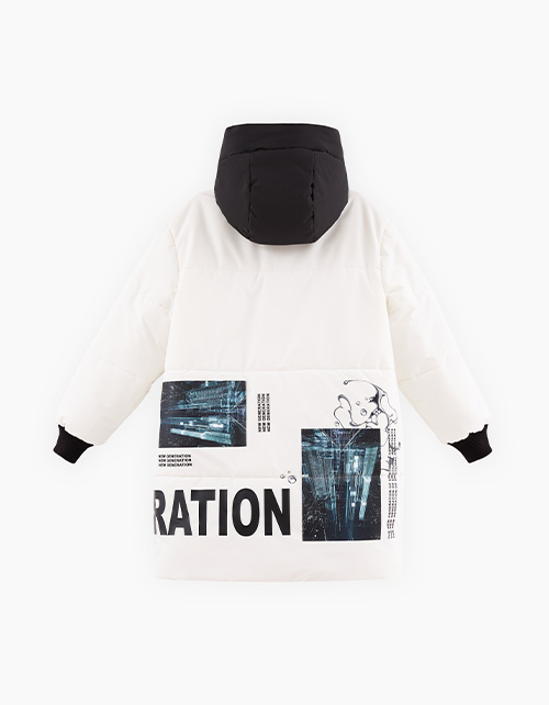 Двухсторонняя зимняя куртка. На чёрной стороне ветрозащитная планка на кнопках. Эластичные трикотажные манжеты. Утяжка по капюшону. Печать DTF, нашивной элемент. Гипоаллергенный силиконизированный синтепон. Рекомендовано до -20.