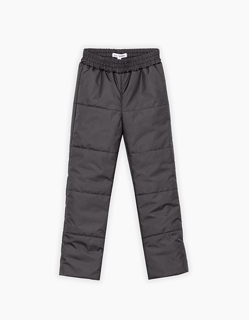 Плащевые графитовые утеплённые брюки для девочки. Комфортная прямая модель со средней посадкой. Мягкий эластичный пояс удобен и прост в одевании. Приятный на ощупь износостойкий материал с водоотталкивающим, водонепроницаемым и ветрозащитным покрытием.
