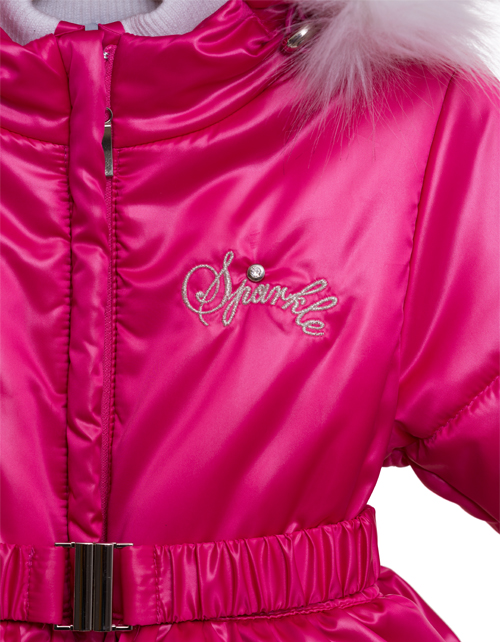 Яркий комбинезон для маленькой принцессы. Современный утеплитель и непромокаемые дышащие материалы дарят комфорт и радость от каждого дня снежной зимы. Уютный воротничок и пушистый капюшон защитят нежное личико от мороза и ледяного ветра.
