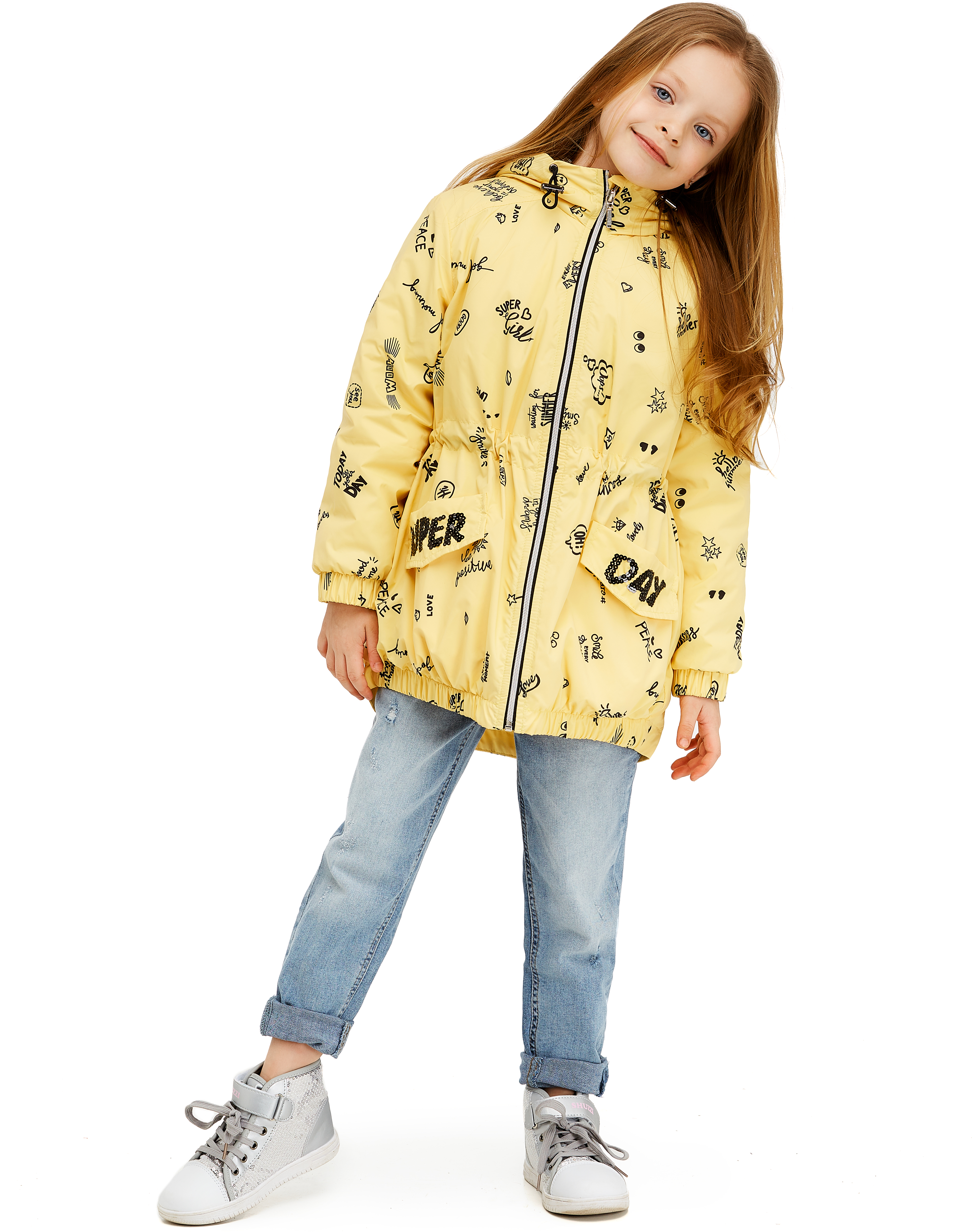 Модная куртка с актуальным графическим принтом для очаровательной девочки. Созданная из водоотталкивающей и легкой, "дышащей" ткани, она подарит комфорт. В ней можно гулять весь день, ведь эта современная стильная модель надежно защищает от ветра и дождя
