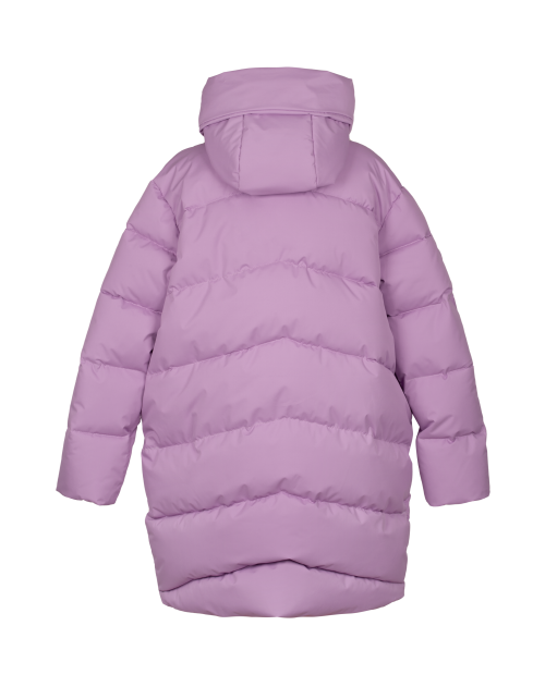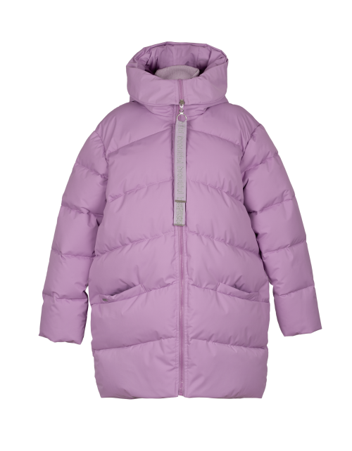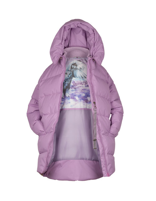 Куртка для девочки на синтепухе прямого силуэта дополнена капюшоном с высоким воротником и застежкой на молнии с декоративной лентой. Ткань плащевая дьюспо хорошо защищает от влаги и ветра, а подкладка из нейлона обеспечивает дополнительный комфорт.