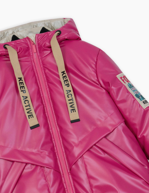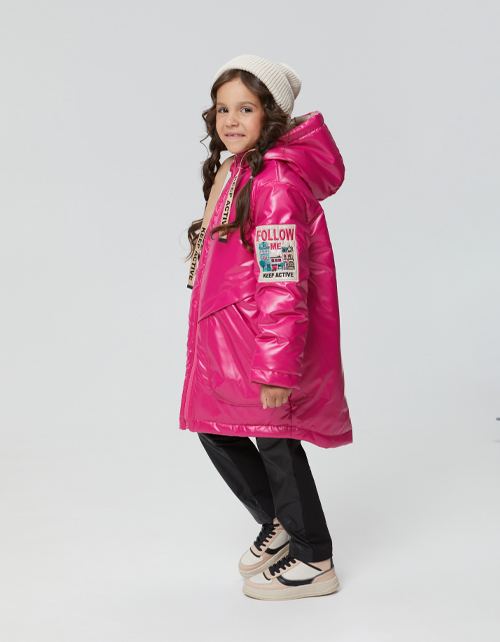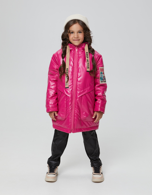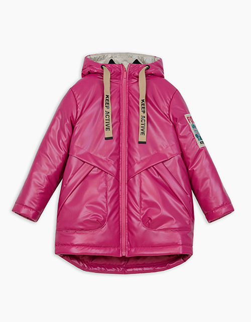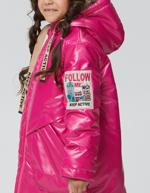 Куртка осенняя сочного оттенка маджента для девочки. Модель на молнии, с капюшоном. Куртка с трикотажным манжетом по внутреннему воротнику и ветрозащитной планкой. Комбинированная подкладка из флиса и нейлона. Декорирована вышивкой с аппликацией.