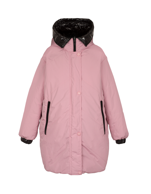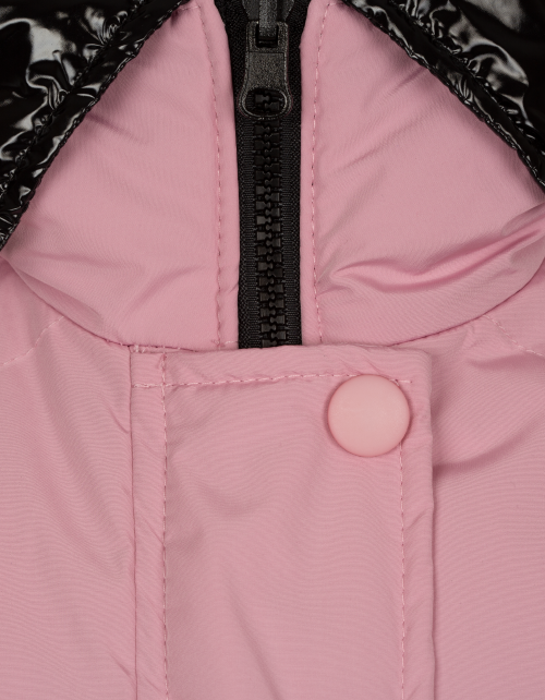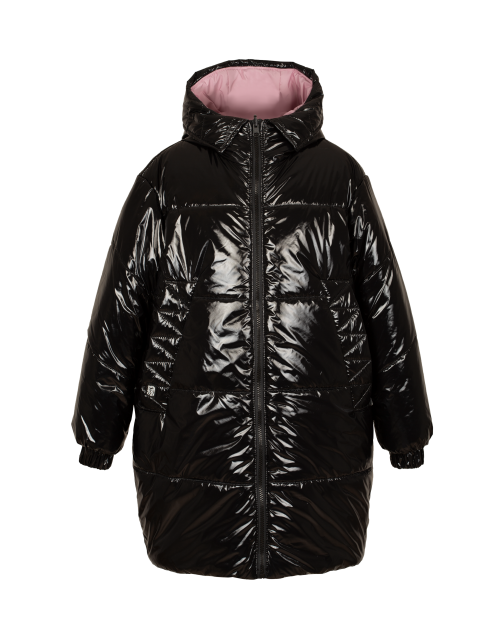 Куртка для девочки на синтепоне дополнена капюшоном, застежкой на молнию и манжетами на рукавах. Двусторонняя куртка объединяет два изделия в одном, ее можно носить на обе стороны. Для пошива используется плащевая таффета с виниловым покрытием и дьюспо.