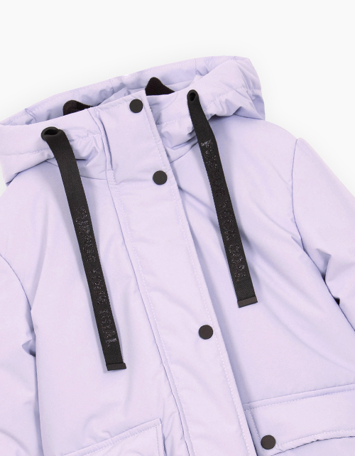 Лиловая зимняя куртка с капюшоном для девочки
