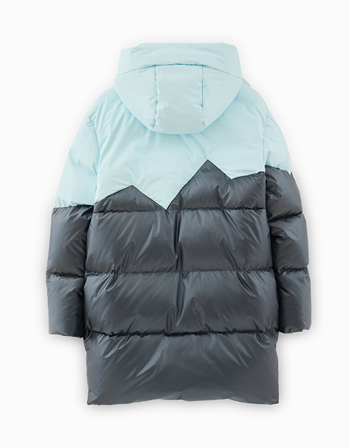 Эффектная зимняя куртка для девочки выполнена из комбинации черного и мятного цвета. Модель с наклонными боковыми карманами декорирована эффектной дизайнерской стежкой в виде гор. Внутренние трикотажный воротник и манжеты.