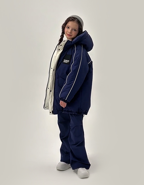 Тёмно-синие брюки-парашюты на флисе для девочки. Комфортная прямая модель со средней посадкой на мягком эластичном поясе из рибаны. Утяжка по низу. Материал с отличными водоотталкивающими и ветрозащитными свойствами. Рекомендованная температура: 0:-5.