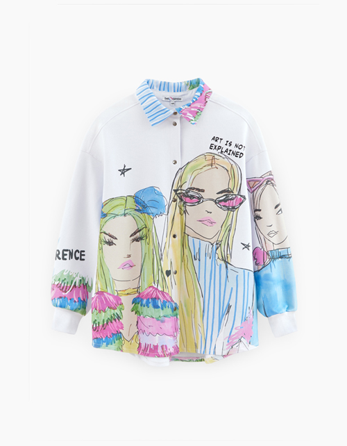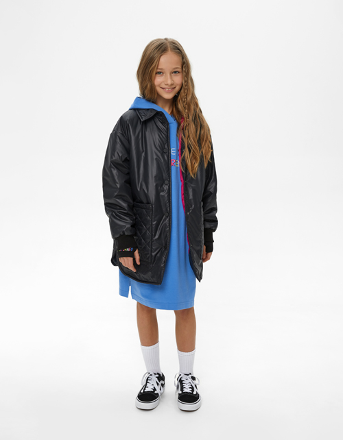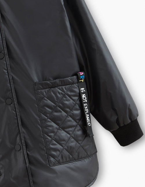 Модная весенняя куртка-рубашка с яркой подкладкой для девочки. Прямая модель со спущенной линией плеча декорирована вышивкой на спинке и элементом из репсовой тесьмы. Наполнитель синтепон (80 гр), подкладка нейлон. Объёмные накладные стёганые карманы.