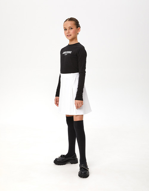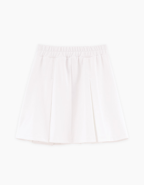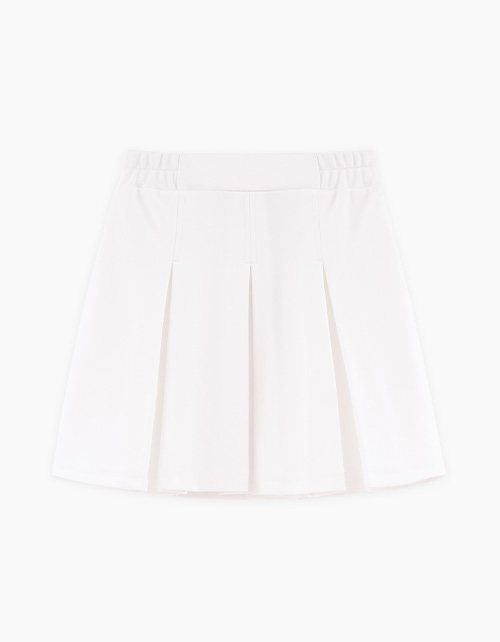 Молочная юбка в теннисном стиле для девочки. Модель комфортного трапециевидного силуэта. Изделие без застёжки, на мягком эластичном поясе. Благодаря материалу хорошо держит форму и не сковывает движений.