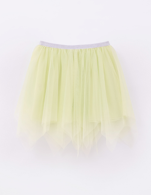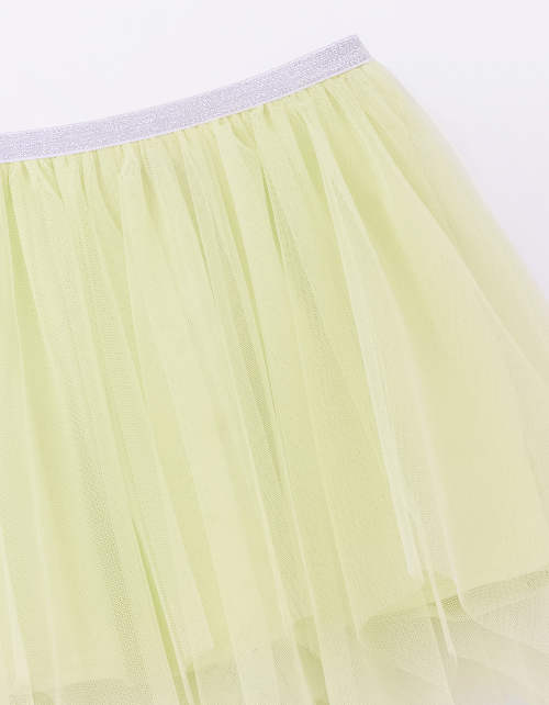 Дизайнерская юбка для девочки. Летящий трапециевидный силуэт с клиньями и лёгким сетчатым полотном создаёт воздушность. Эластичная резинка обеспечивает комфорт, а блестящий пояс добавляет праздничного сияния. Нежная кулирная гладь и мягкая сетка.