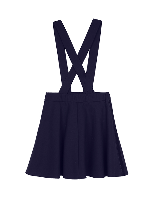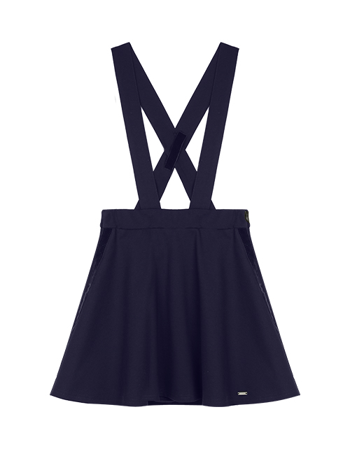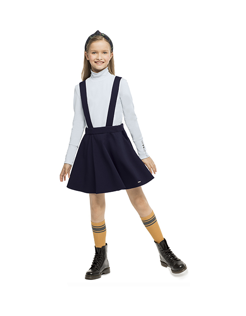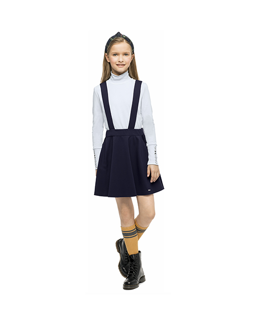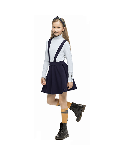 Юбка для девочки из комфортного джерси. Модные элементы в виде широких шлеек и бархатных лампас делают юбку стильным и интересным элементом любого комплекта, придавая формальному школьному образу индивидуальность.