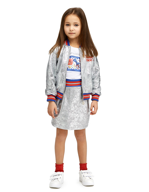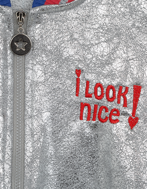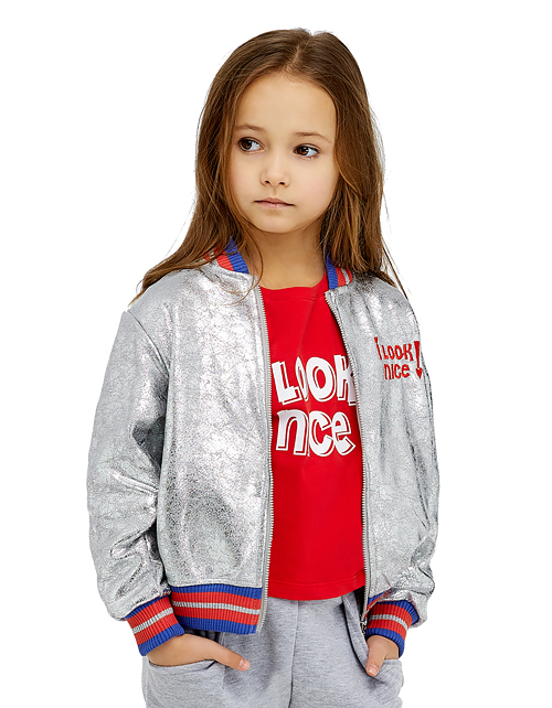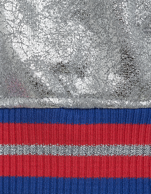 Футуристический бомбер для самой модной и стильной красавицы! Эта модель украсит гардероб и станет незаменимой благодаря актуальной расцветке металлик и контрастным трехцветным манжетам