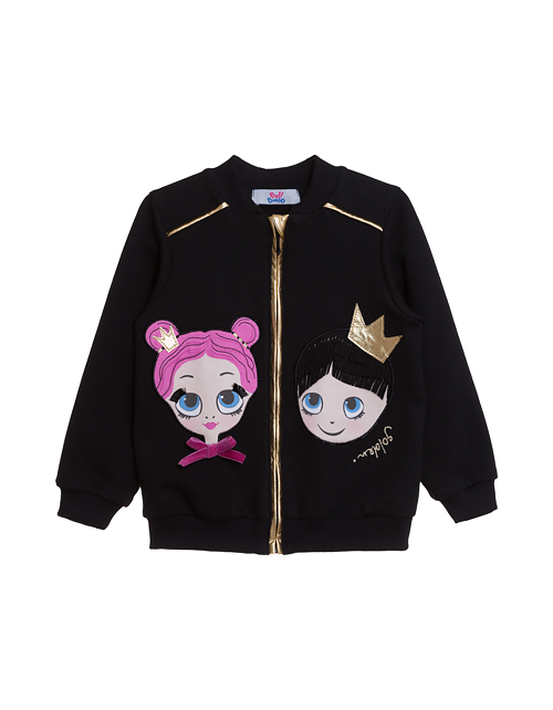 Стильный бомбер для девочки из мягкой ткани. Свободный крой не сковывает движения. Контрастные яркие вышивки с аппликациями, обилие "золотых" деталей декора сделают эту модель любимой и подарят сказочное настроение.