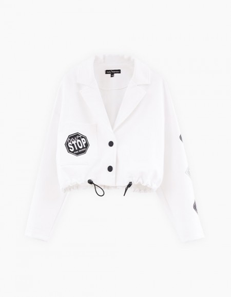 Школьный жилет из черного трикотажа с вискозой для девочки. Модель удлиненного свободного силуэта с запахом декорирована фирменной эмблемой капсулы Back2School Girls. Обхват по талии регулируется широкой завязкой на полукольцах сбоку