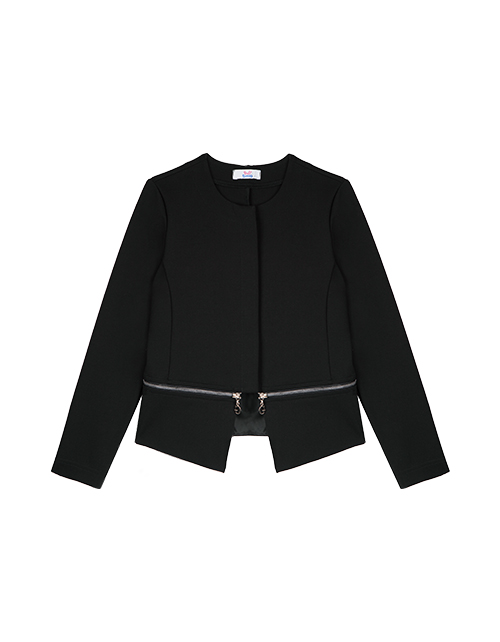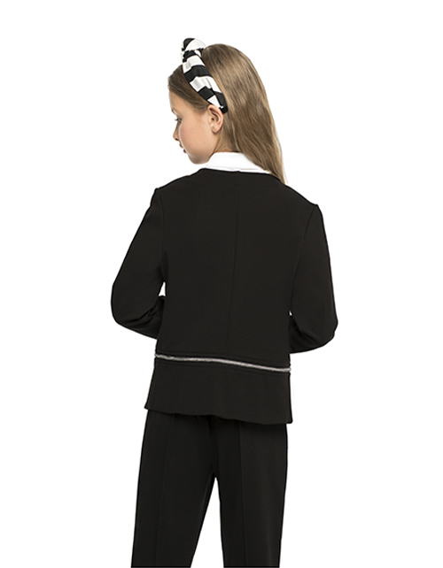 Стильный пиджак для девочки с отстежной баской. Яркий авторский акцент в виде необычного кроя индивидуализирует школьный образ. Трикотажное полотно джерси гарантирует приятные тактильные ощущения и изящный внешний вид в течении всего учебного дня.