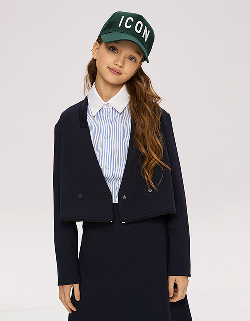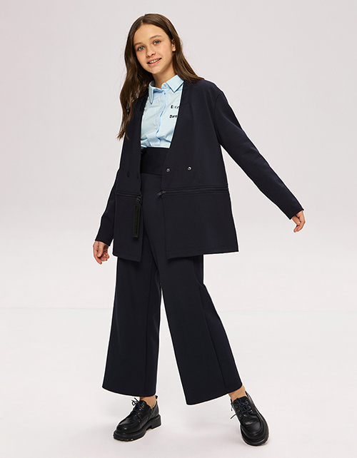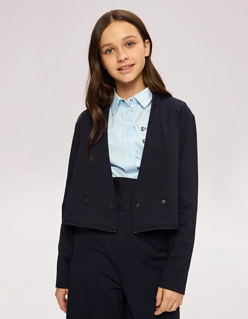 Темно-синий пиджак-трансформер - хит школьного сезона. Комфортная модель прямого силуэта. Функциональная молния.