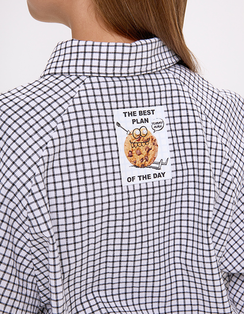 Укороченный жакет-рубашка с лёгким жатым эффектом. Объёмный крой даёт свободу движений. Пояс с мягкой резинкой обеспечивает комфортную посадку. DTF-принт и жемчуг создают стильный акцент. Модель хорошо сочетается с базовыми вещами.