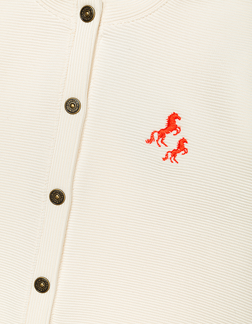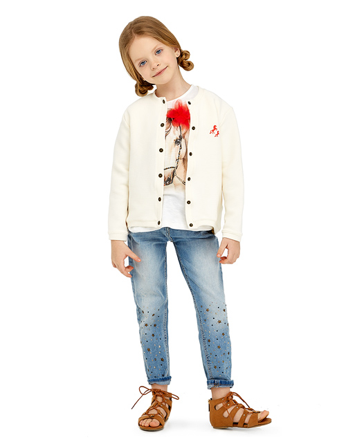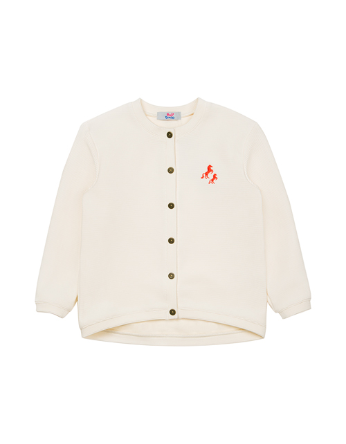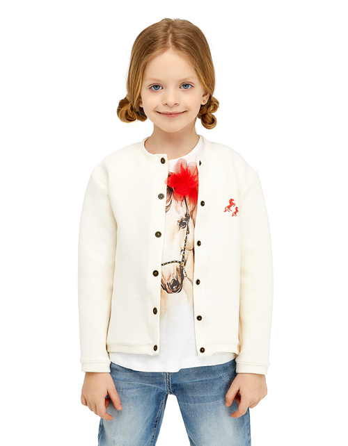 Уютный жакет с удлиненной спинкой создан для стильной маленькой модницы. Мягкая ткань и удобный оверсайз силуэт обеспечивают абсолютный комфорт. Вышивка в виде огненных лошадок - яркий акцент, придающий изделию особое настроение и эксклюзивность
