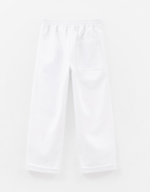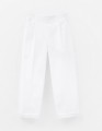 Белые брюки из твила, хорошо держат форму. Прямой силуэт и средняя посадка обеспечивают комфорт, мягкий эластичный пояс - удобную фиксацию. Боковые и накладной карманы практичны. Универсальная база для образов на особые случаи.