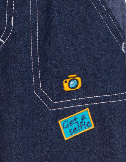 Привлекательные комфортные брюки модного силуэта с удобными накладными карманами станут идеальной основой для образа на каждый день. Актуальная расцветка и яркие акценты - контрастные нашивки и принты на тему селфи - сделают Вашего мальчика самым стильным