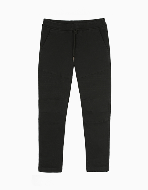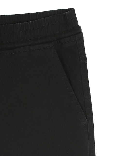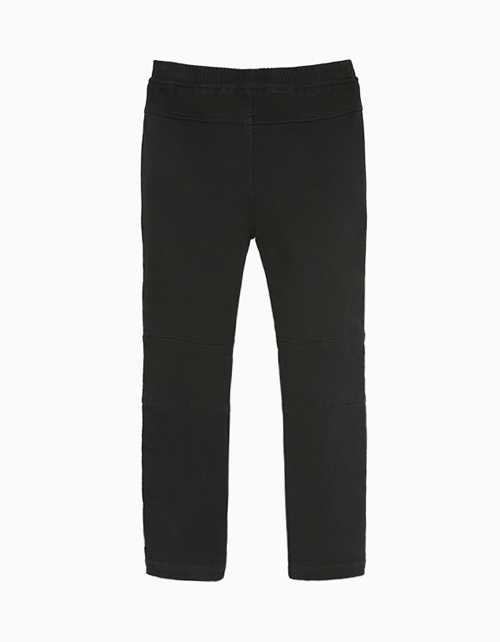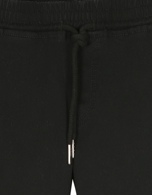 Черные брюки для мальчика в спортивном стиле имеют прямой силуэт и дополнены удобной резинкой на поясе и шнурком-затяжкой. Изделие пошито из твила, что гарантирует износостойкость и комфорт.