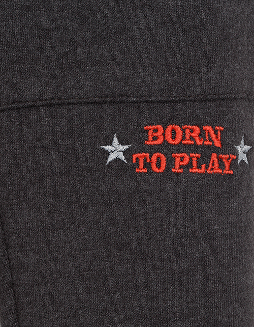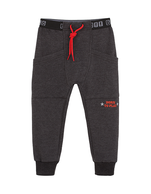 Удобные стильные штанишки для самого активного мальчика! Натуральная ткань и подуманный дизайн делают модель невероятно комфортной. Яркие акценты: принтованный пояс со шнурком, надписи и звездочки