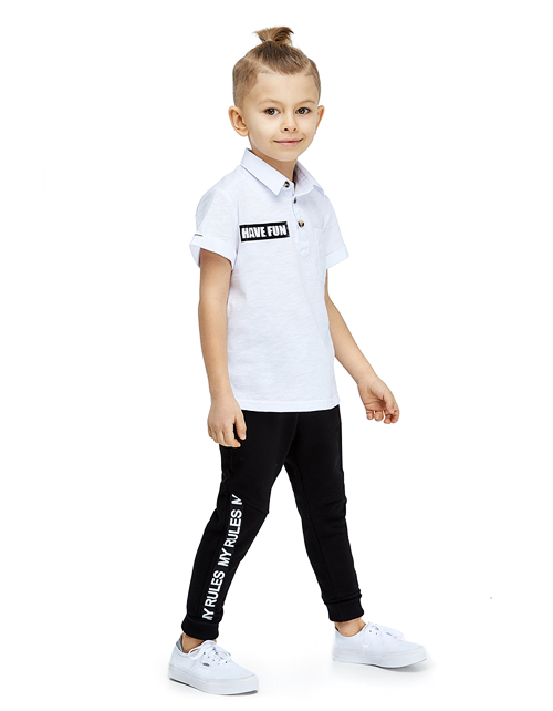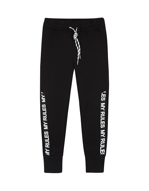 Стильные брюки спортивного типа незаменимы на каждый день! Сочетание комфорта и модных элементов - контрастного шнурка, манжет и лампас с мотивирующими надписями - делает эту модель ультрамодным и актуальным элементом гардероба