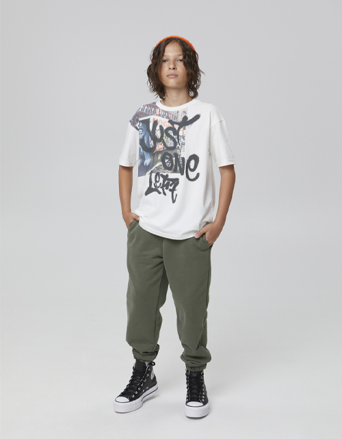 Брюки-джоггеры со средней посадкой для мальчика. Комфортная базовая модель без застёжки, на мягком поясе. Брюки с карманами. Изделие из футера с браш-эффектом.