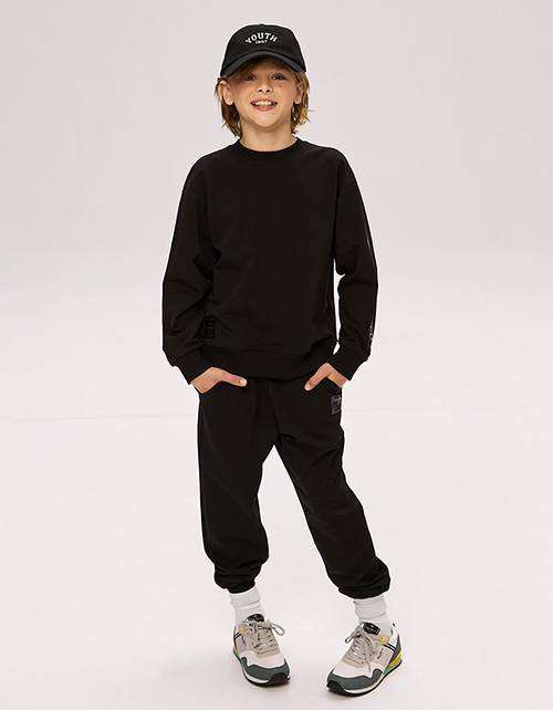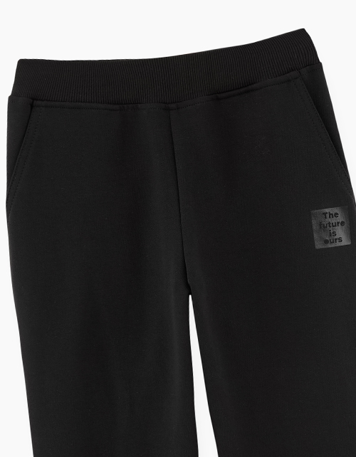 Черные брюки-джоггеры для мальчика. Отличный вариант для создания стильного повседневного образа. Комфортная модель на эластичном поясе с наклонными боковыми карманами.
