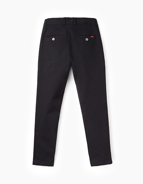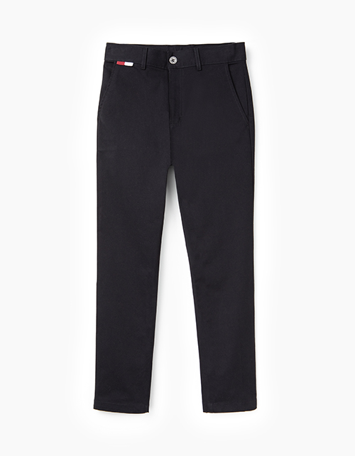 Прямые брюки из твила черного цвета для мальчика. ВАЖНО! Проверьте параметры размерного ряда модели перед заказом. Модель большемерит