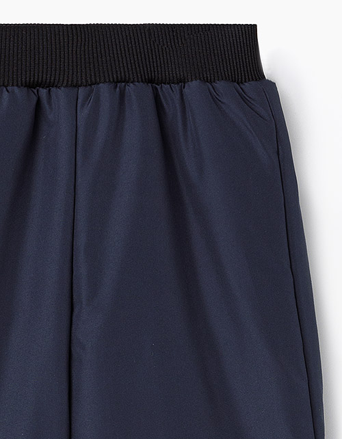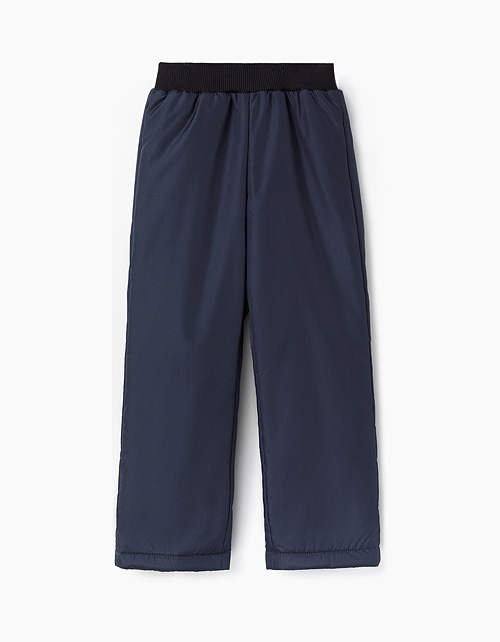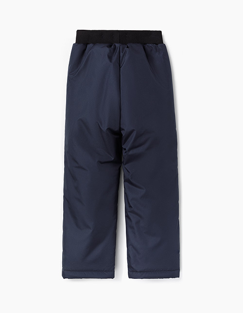 Черные брюки на синтепоне для мальчика. Выполнены из плащевой ткани. Прямого свободного кроя. На эластичном поясе из мягкой рибаны. Сохранят тепло и защитят от сырости в холодную погоду
