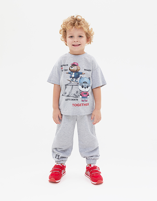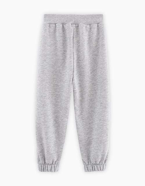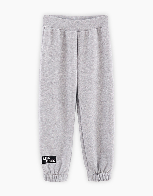 Комфортные базовые брюки в оттенке серый меланж для мальчика. Модель объёмного силуэта. Изделие на мягком поясе, со средней посадкой. Мягкие манжеты на эластичной тесьме. Авторский принт.