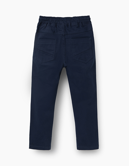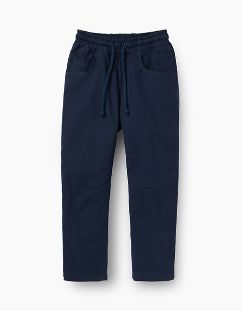 Утепленные брюки узкого прямого силуэта. Выполнены из темно-синего твила с подкладкой из флиса. На мягком поясе с регулировкой шнуром. Функциональные карманы спереди и сзади. Практичная модель на каждый день