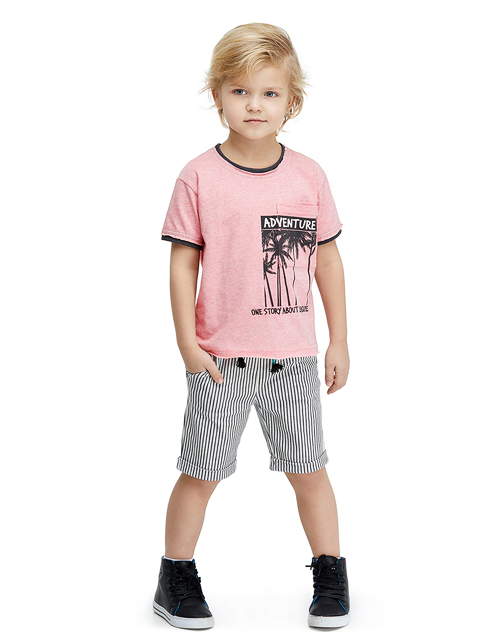 Комфортная футболка с имитацией многослойности создана, чтобы Ваш мальчик выглядел самым стильным! Приятная цветовая гамма и контрастный принт с изображением пальм настроят на волну увлекательных летних приключений