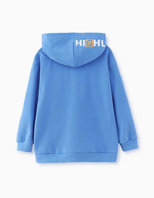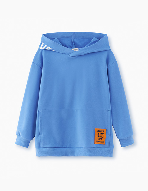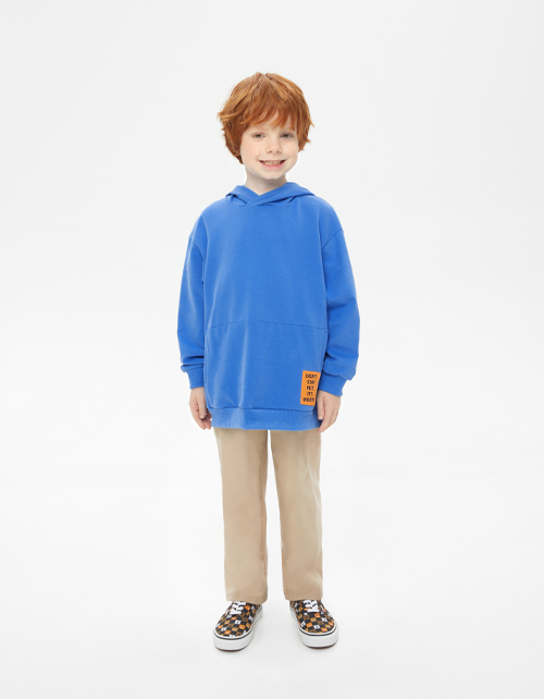 Лазурное худи для мальчика. Прямая модель со спущенной линией плеча. Джемпер с капюшоном и скрытым карманом-кенгуру декорирован контрастной лейбой. Худи выполнено из футера с браш-эффектом, что делает его мягким и бархатистым, повышая износостойкость.