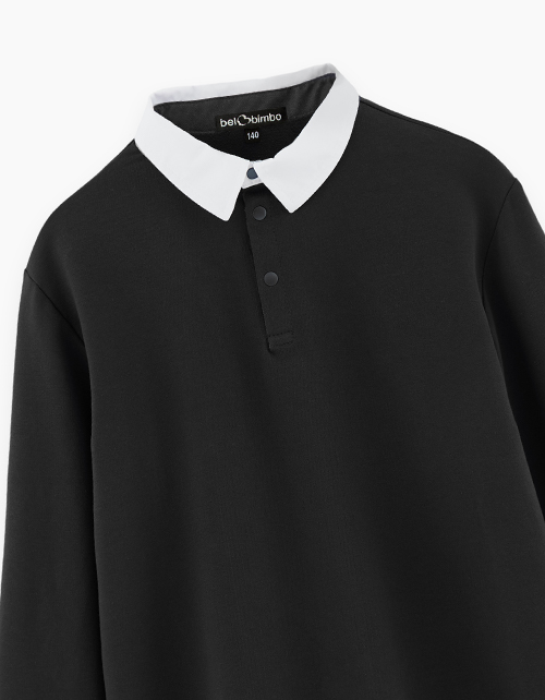Джемпер-обманка для мальчика. Трендовая школьная модель. Имитация черного джемпера и белой рубашки. Удобная застежка-поло на кнопки.