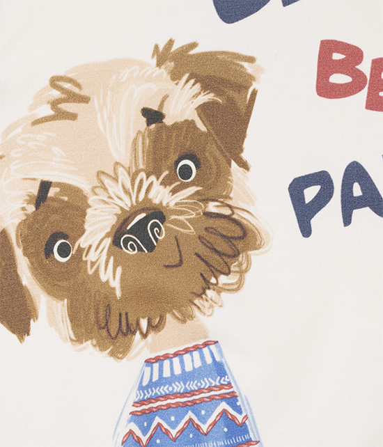 Джемпер для мальчика с собакой дополнен удобными манжетами на рукавах, круглым вырезом горловины и застежкой на кнопках на плече. Свободный силуэт гарантирует удобство в носке, а ткань футер - износостойкость изделия и приятные тактильные ощущения.