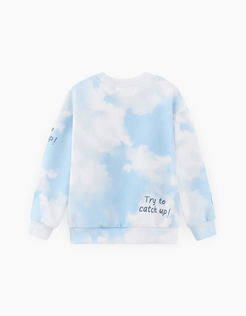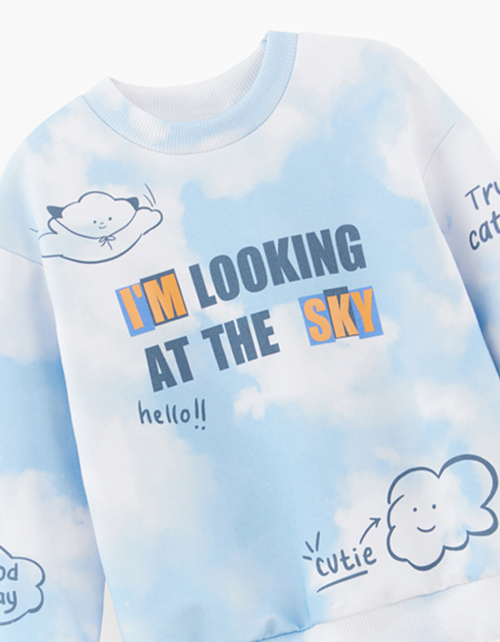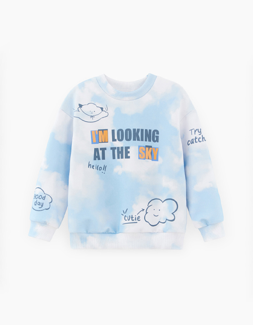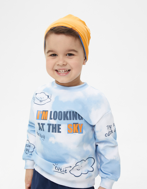 Стильный свитшот для мальчика. Модель прямого силуэта со спущенной линией рукава. Изделие из футера декорировано оригинальной техникой принтов и шрифтов.