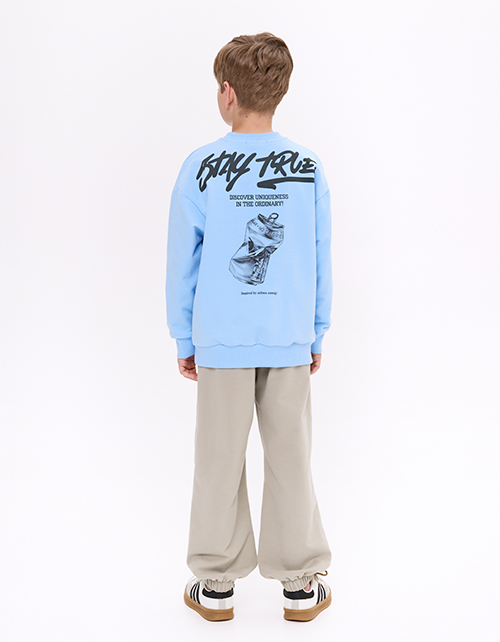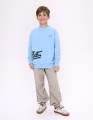 Светло-голубой свитшот из футера с браш-эффектом. Прямой силуэт с объёмом по низу на рибане создаёт современный вид. Эластичная горловина и длинный рукав обеспечивают удобную посадку. Цифровой принт с термоплёнкой подчёркивает чёткость деталей.