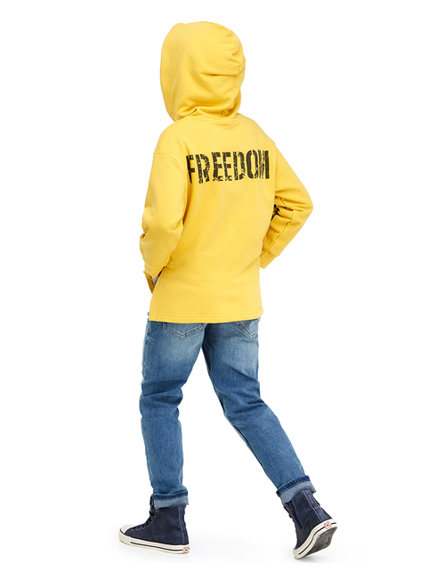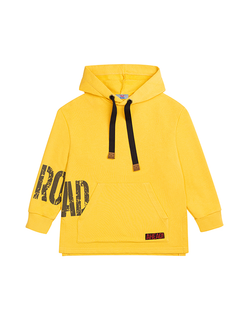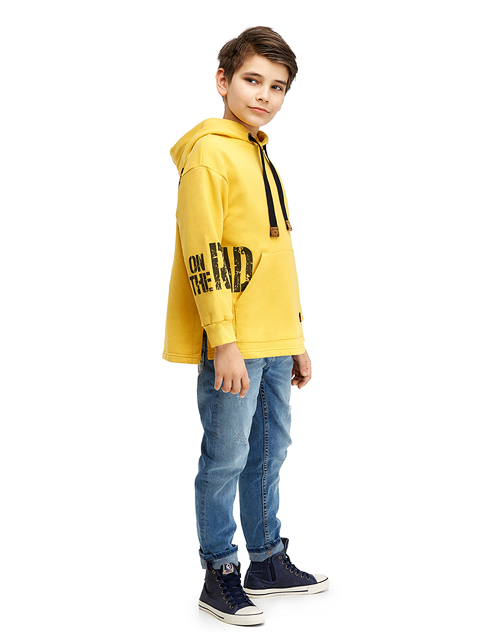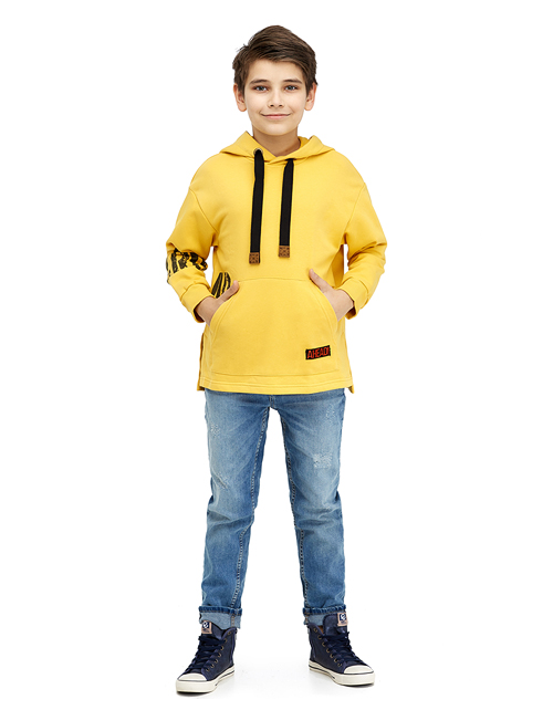 Стильное худи - что может быть удобнее для повседневного имиджа современного мальчика? Приятный материал, свободная форма, спущенный рукав и разрезы по бокам создают расслабленный комфортный образ, дополненный графическим принтом и контрастная нашивкой