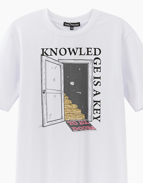 Белая футболка. Модель прямого силуэта. Изделие декорировано авторским дизайнерским принтом в стиле коллекции. Модель унисекс.