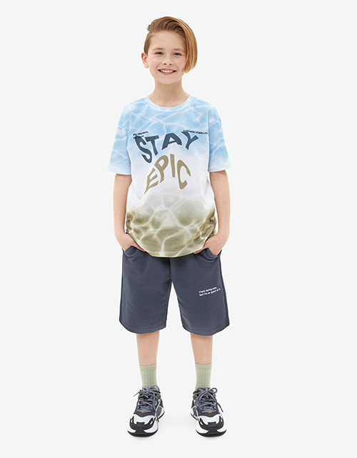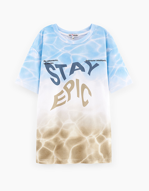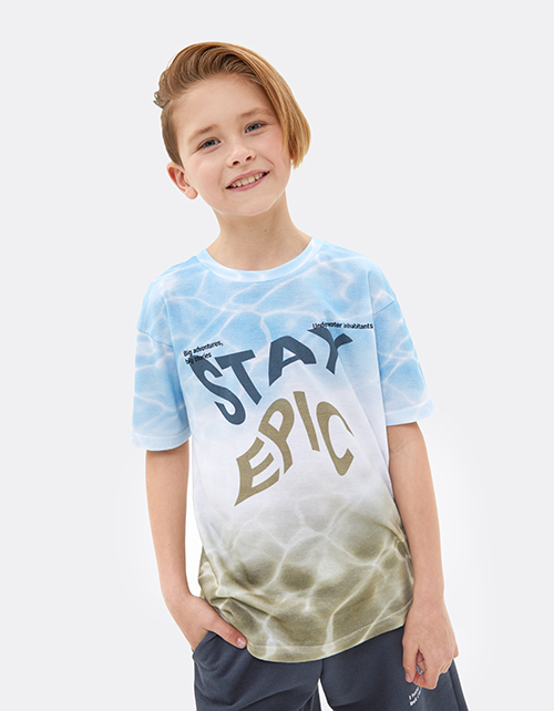 Дизайнерская футболка для мальчика. Модель прямого силуэта. Спущенная линия плеча. Эластичная горловина из рибаны. Авторский принт по всему изделию.